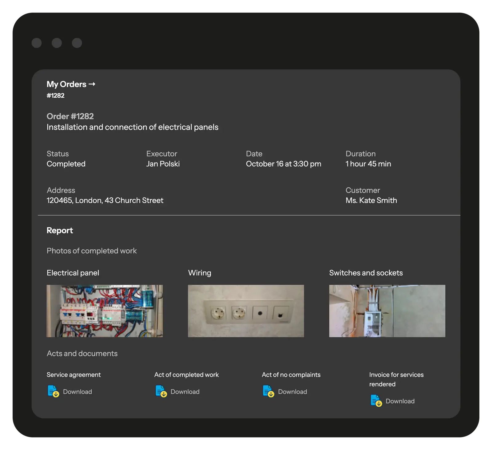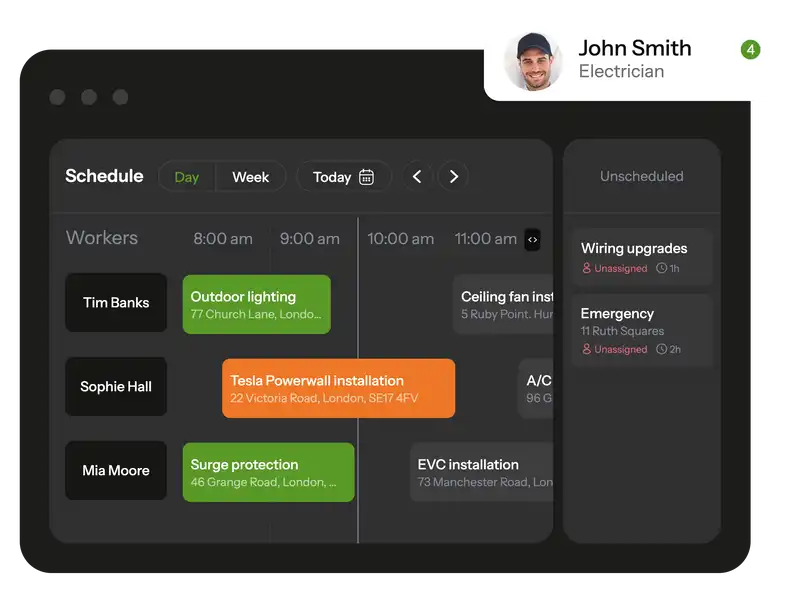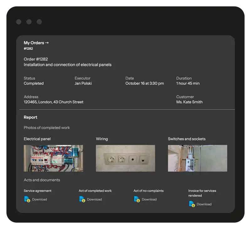 Yes. You can track electricians in real time: see where each technician is, what tasks they’re working on, and the current stage of the job. GPS location, time stamps, and photo reports give you full visibility over every project.