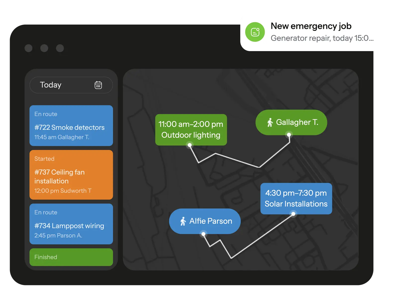 On busy days, assignments shift more than once. Electrical dispatch software keeps those adjustments manageable by giving dispatchers a clear overview of where each technician is and what they’re working on. A sudden outage, a last-minute request, or a revisitation can be handled with fewer delays because the system highlights the closest available person with the right skills. Technicians get the update immediately in the app and can move without waiting for another phone call.