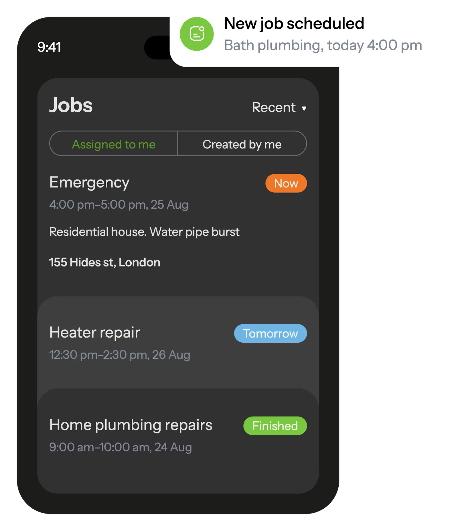 In the mobile app, your handyman see all scheduled tasks and receive notifications about new assignments.