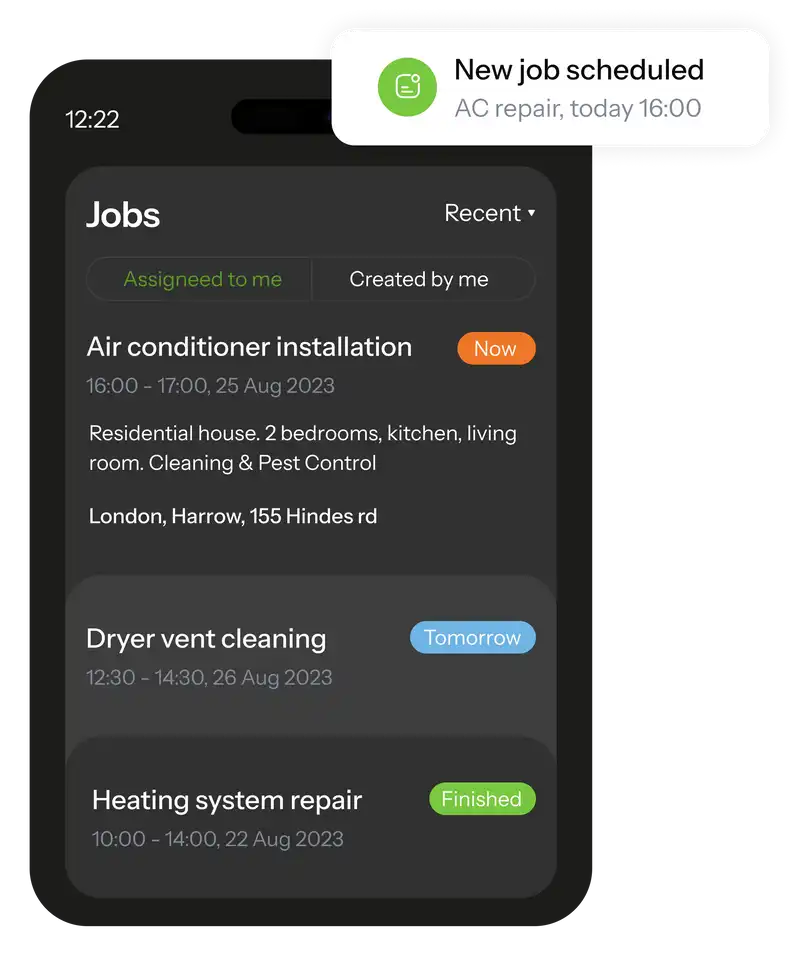 Technicians receive all scheduled tasks and updates through the mobile app and get notifications about new assignments.