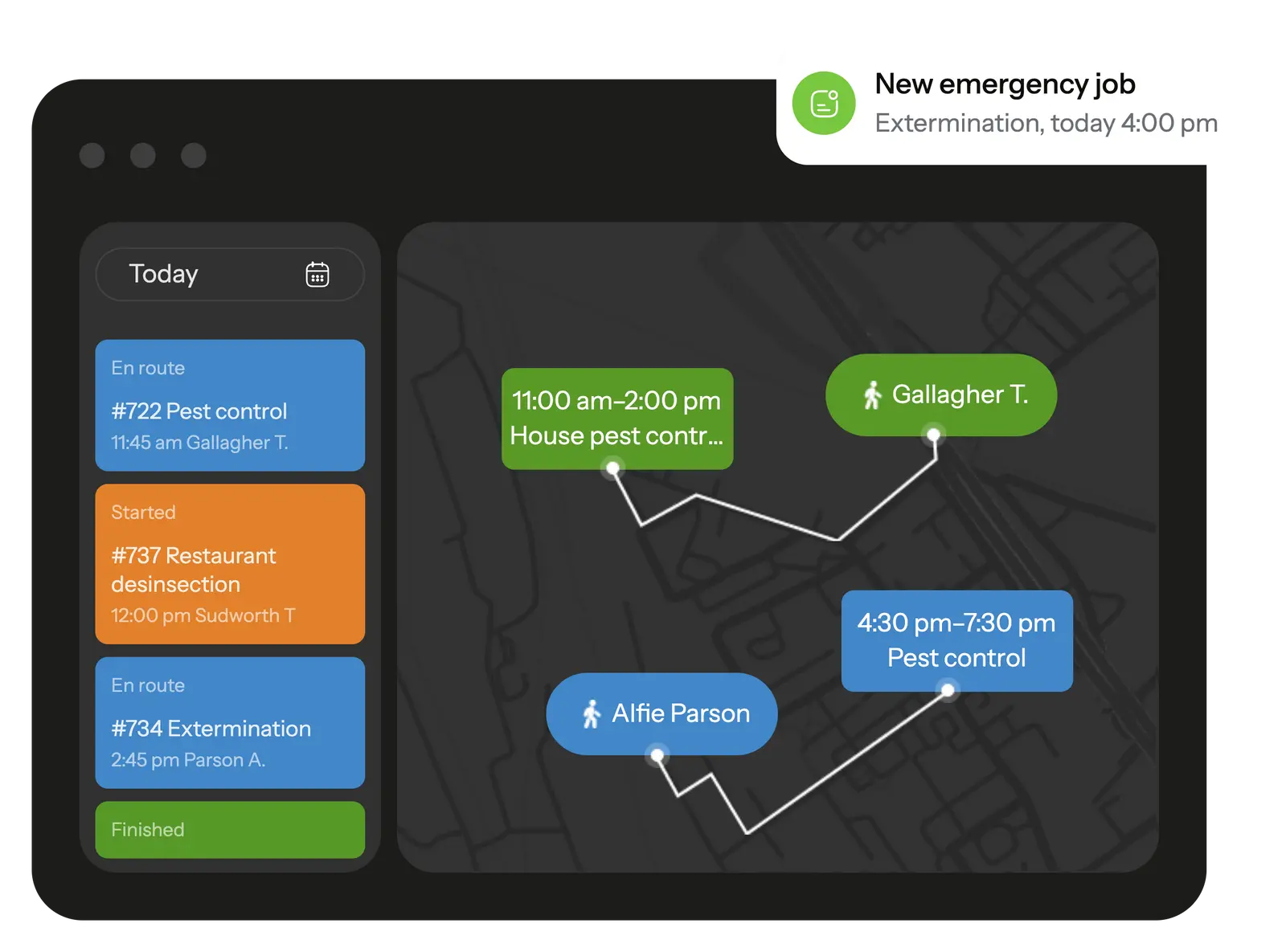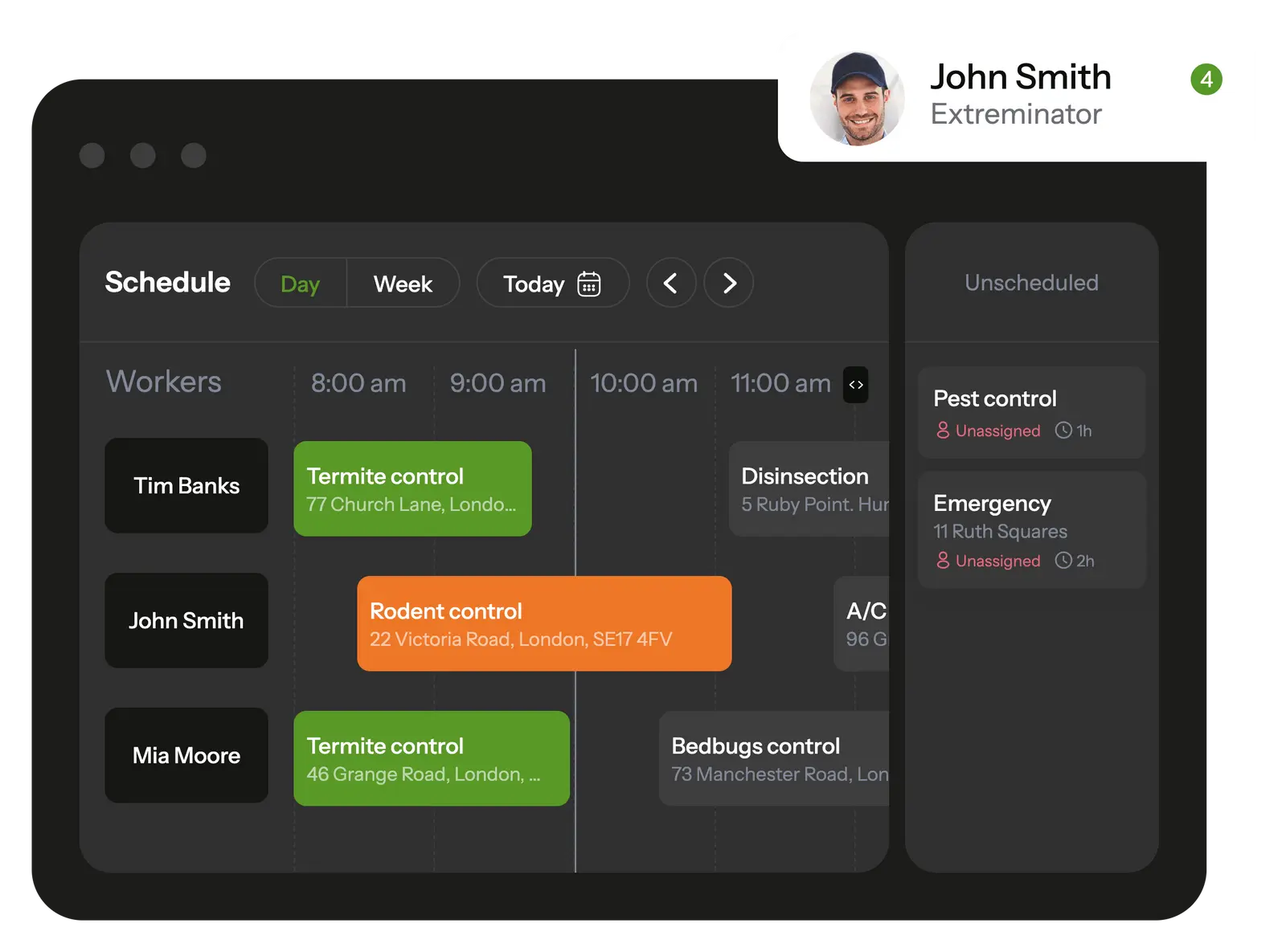 In the mobile app, your pest control technicians see all scheduled tasks and receive notifications about new assignments.